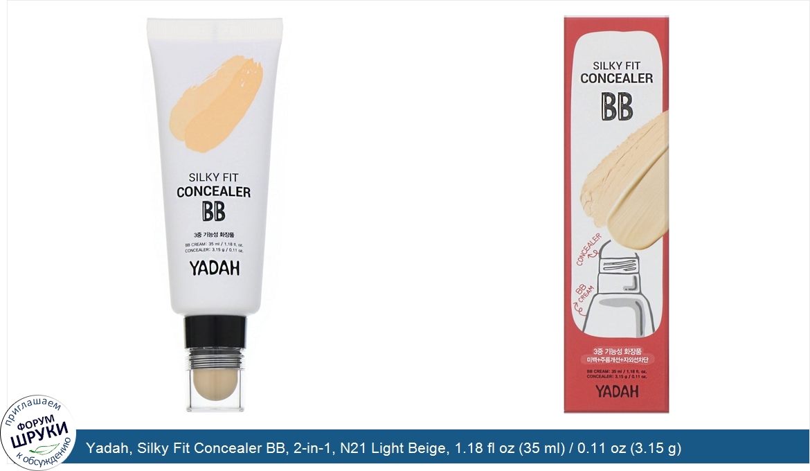 Друзья, если у вас есть отзыв/дополнение/комментарий/вопрос относительно Yadah, Silky Fit Concealer BB, 2-in-1, N21 Light Beige, 1.18 fl oz (35 ml) / 0.11 oz (3.15 g) - напишите его ответом в эту тему (это будет полезно всему сообществу в целом и вам в отдельности).