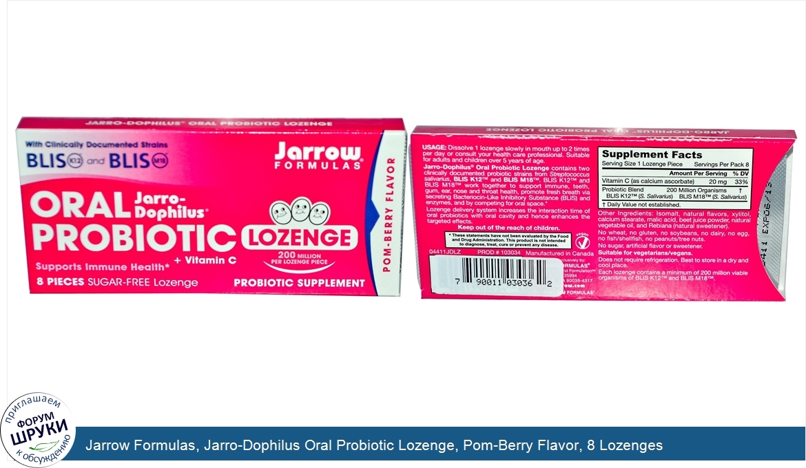 ru Jarrow Formulas, Jarro-Dophilus Oral Probiotic Lozenge, Pom-Berry Flavor, 8 Lozenges