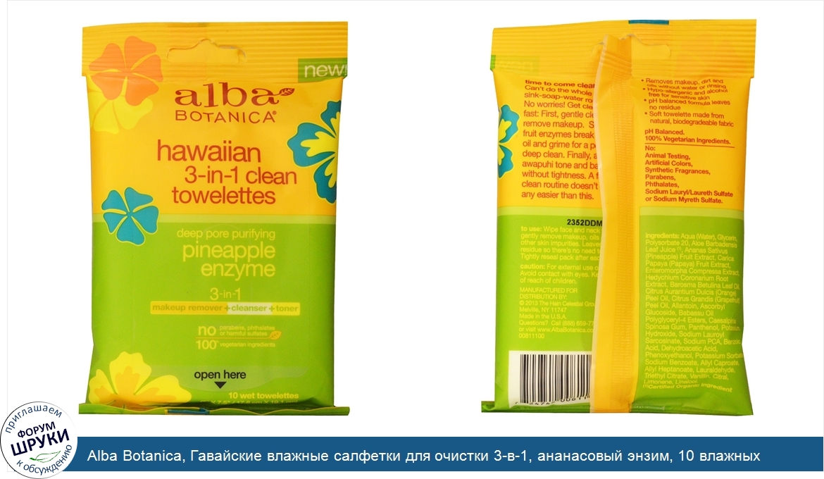 Друзья, если у вас есть отзыв/дополнение/комментарий/вопрос относительно Alba Botanica, Гавайские влажные салфетки для очистки 3-в-1, ананасовый энзим, 10 влажных салфеток - напишите его ответом в эту тему (это будет полезно всему сообществу в целом и вам в отдельности).