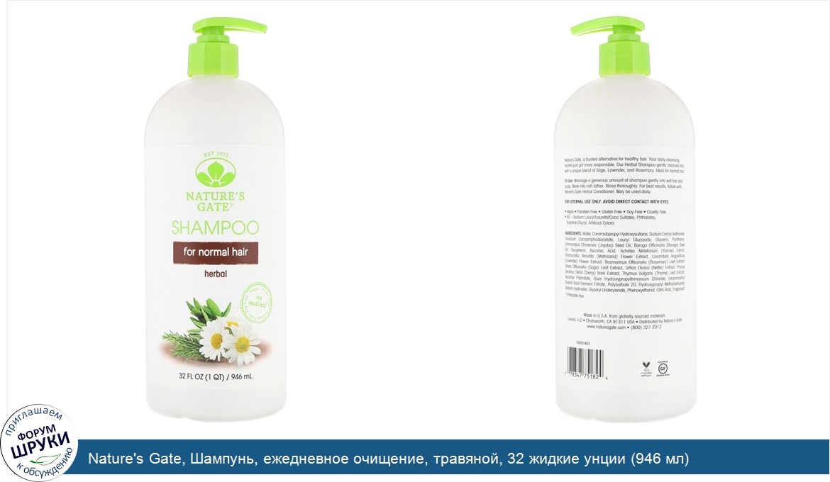 ru Nature's Gate, Шампунь, ежедневное очищение, травяной, 32 жидкие унции (946 мл)