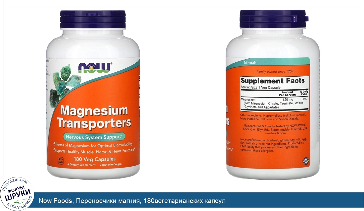 Now Foods, Переносчики магния, 180вегетарианских капсул