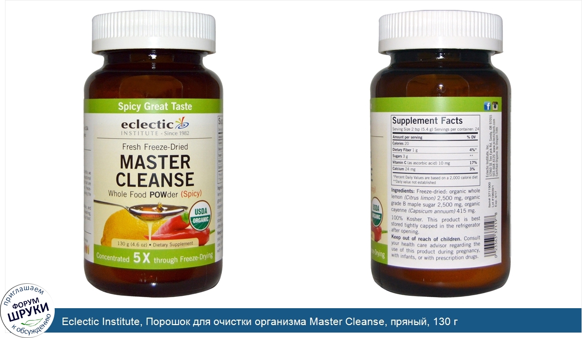 Друзья, если у вас есть отзыв/дополнение/комментарий/вопрос относительно Eclectic Institute, Порошок для очистки организма Master Cleanse, пряный, 130 г - напишите его ответом в эту тему (это будет полезно всему сообществу в целом и вам в отдельности).