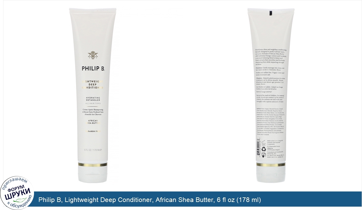 Друзья, если у вас есть отзыв/дополнение/комментарий/вопрос относительно Philip B, Lightweight Deep Conditioner, African Shea Butter, 6 fl oz (178 ml) - напишите его ответом в эту тему (это будет полезно всему сообществу в целом и вам в отдельности).
