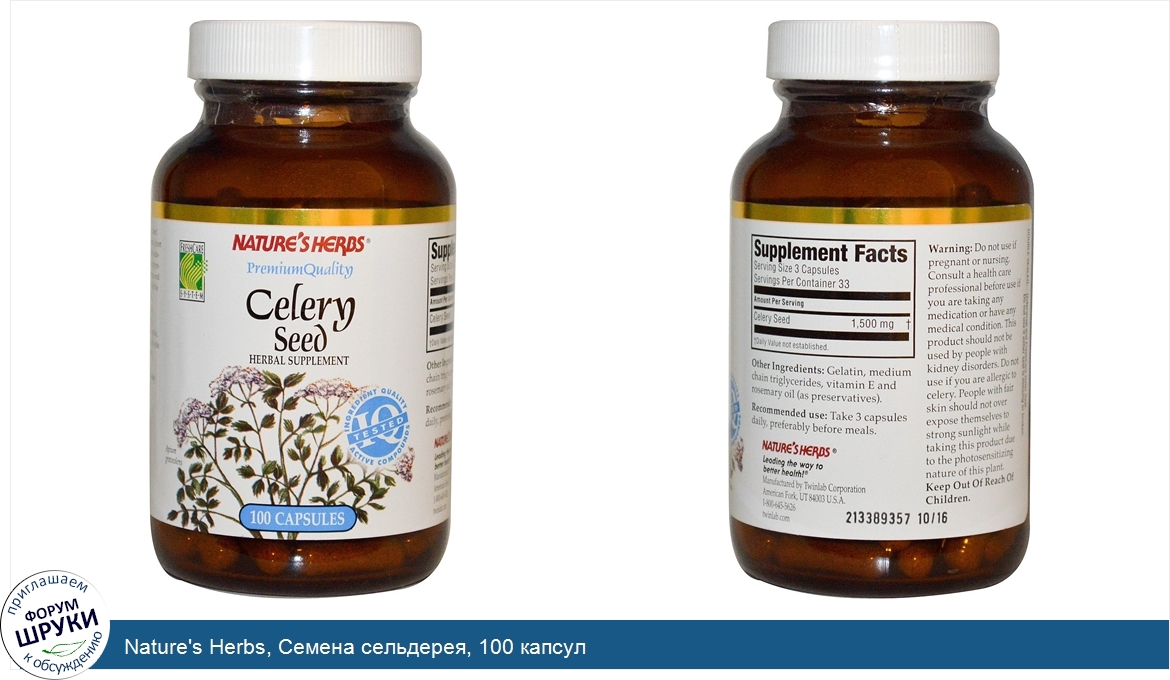 Друзья, если у вас есть отзыв/дополнение/комментарий/вопрос относительно Nature's Herbs, Семена сельдерея, 100 капсул - напишите его ответом в эту тему (это будет полезно всему сообществу в целом и вам в отдельности).