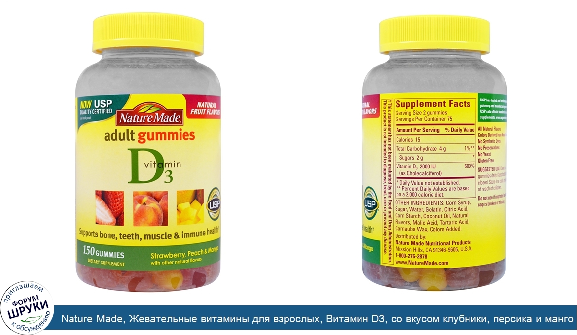 Друзья, если у вас есть отзыв/дополнение/комментарий/вопрос относительно Nature Made, Жевательные витамины для взрослых, Витамин D3, со вкусом клубники, персика и манго, 150 жевательных таблеток - напишите его ответом в эту тему (это будет полезно всему сообществу в целом и вам в отдельности).