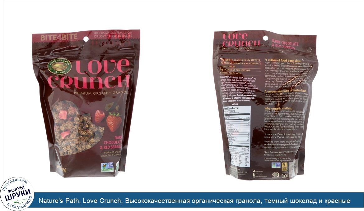 Nature's Path, Love Crunch, Высококачественная органическая гранола, темный шоколад и красные ягоды, 11,5 унций (325 г)