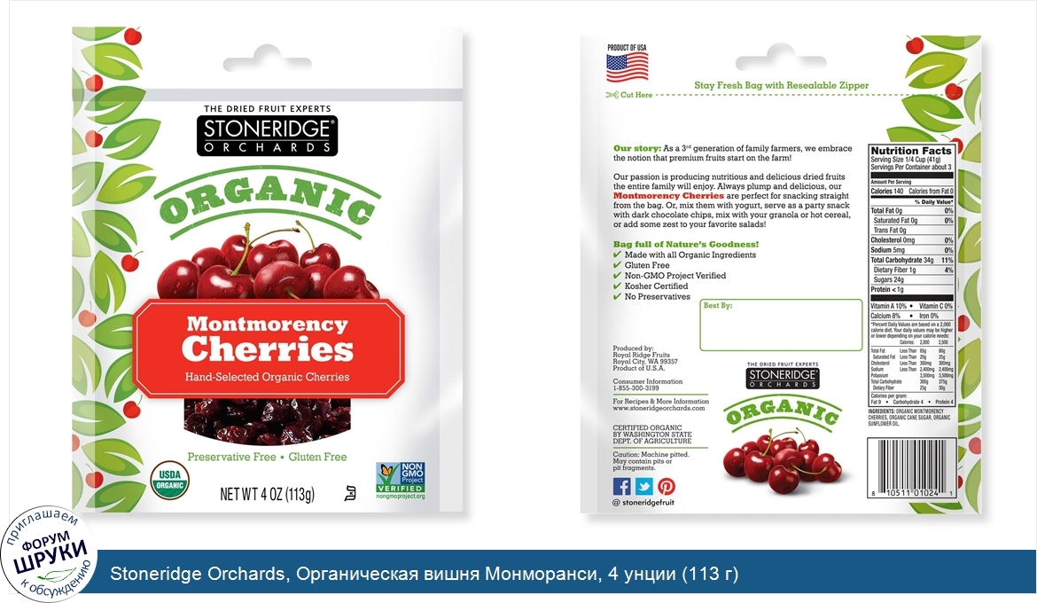 Друзья, если у вас есть отзыв/дополнение/комментарий/вопрос относительно Stoneridge Orchards, Органическая вишня Монморанси, 4 унции (113 г) - напишите его ответом в эту тему (это будет полезно всему сообществу в целом и вам в отдельности).