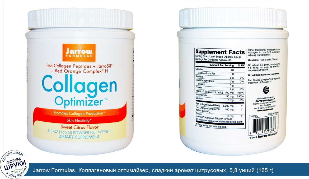 Друзья, если у вас есть отзыв/дополнение/комментарий/вопрос относительно Jarrow Formulas, Коллагеновый оптимайзер, сладкий аромат цитрусовых, 5,8 унций (165 г) - напишите его ответом в эту тему (это будет полезно всему сообществу в целом и вам в отдельности).