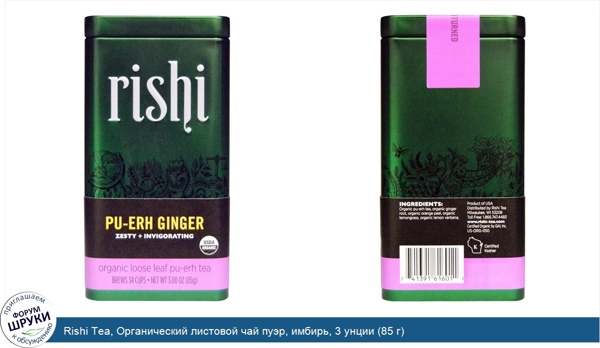 Друзья, если у вас есть отзыв/дополнение/комментарий/вопрос относительно Rishi Tea, Органический листовой чай пуэр, имбирь, 3 унции (85 г) - напишите его ответом в эту тему (это будет полезно всему сообществу в целом и вам в отдельности).