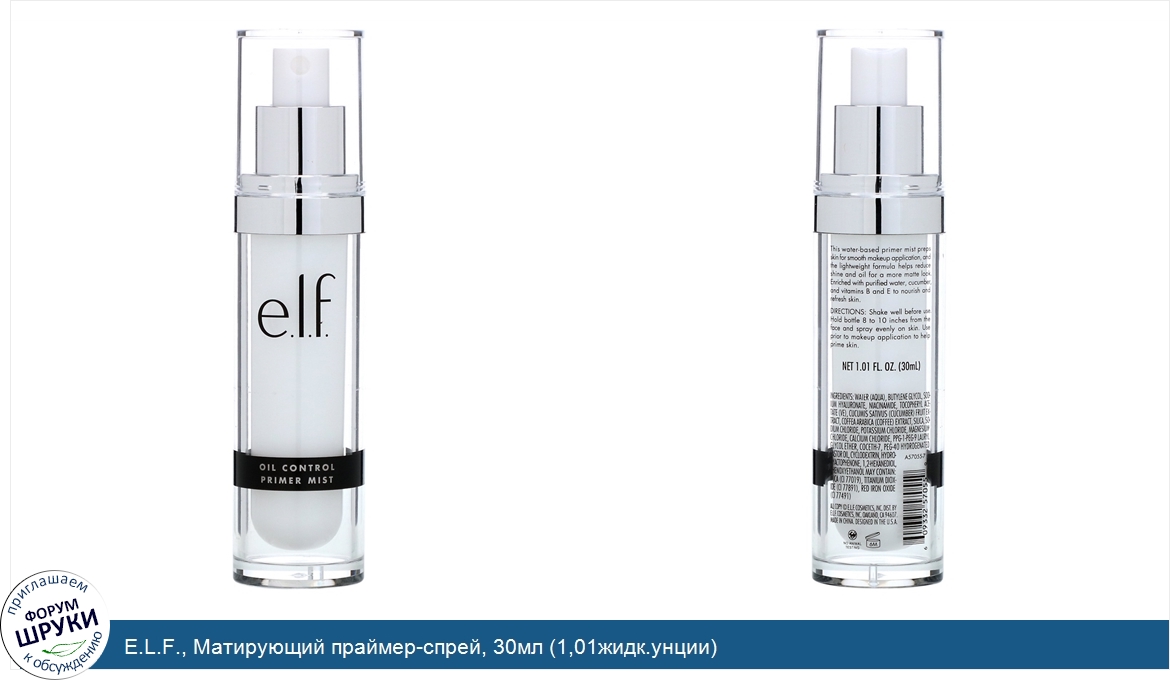 Друзья, если у вас есть отзыв/дополнение/комментарий/вопрос относительно E.L.F., Матирующий праймер-спрей, 30мл (1,01жидк.унции) - напишите его ответом в эту тему (это будет полезно всему сообществу в целом и вам в отдельности).