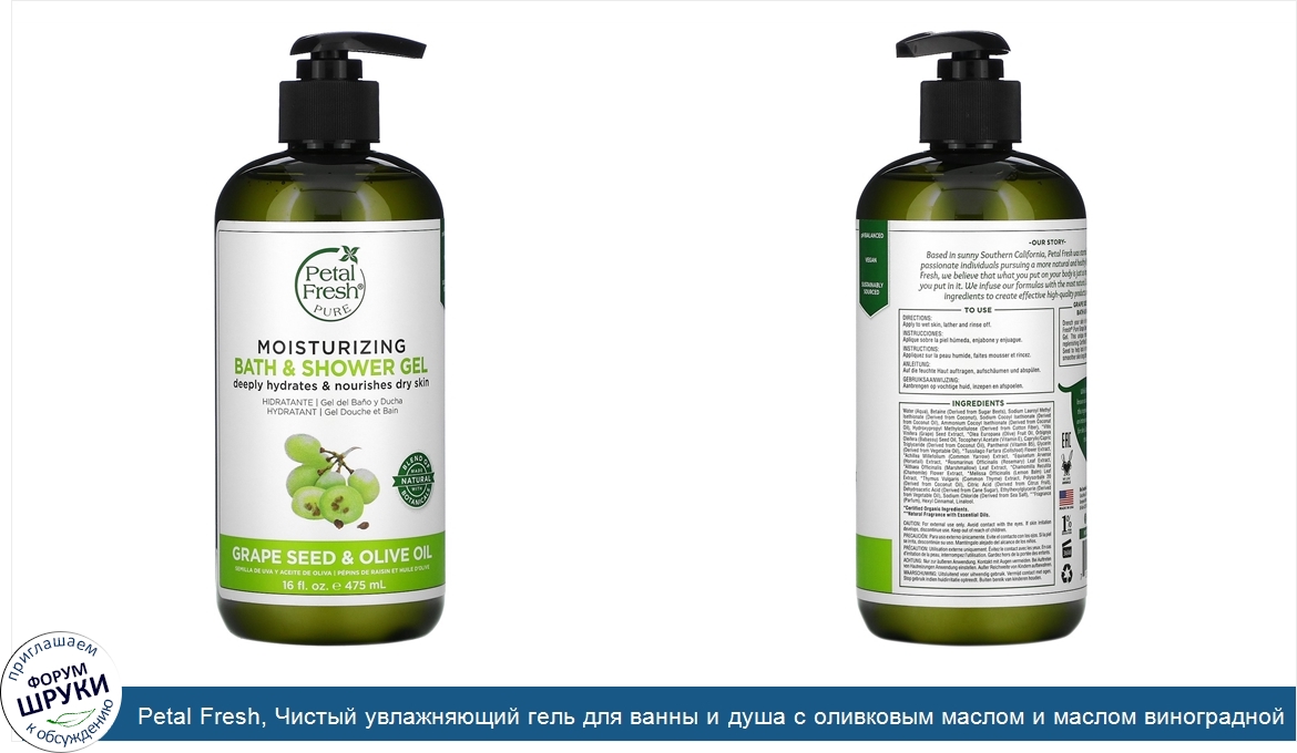 Petal Fresh, Чистый увлажняющий гель для ванны и душа с оливковым маслом и маслом виноградной косточки, 475 мл