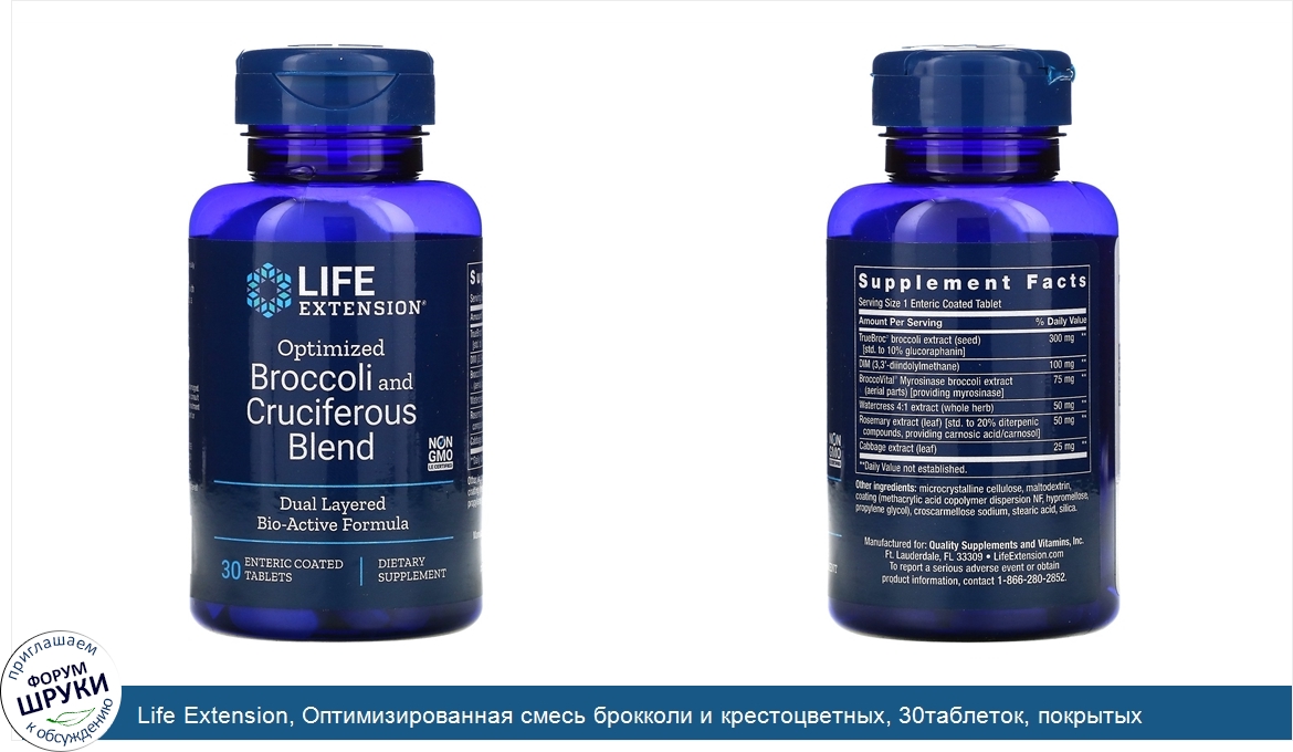 ru Life Extension, Оптимизированная смесь брокколи и крестоцветных, 30таблеток, покрытых кишечнорастворимой оболочкой