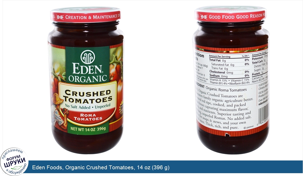 Друзья, если у вас есть отзыв/дополнение/комментарий/вопрос относительно Eden Foods, Organic Crushed Tomatoes, 14 oz (396 g) - напишите его ответом в эту тему (это будет полезно всему сообществу в целом и вам в отдельности).