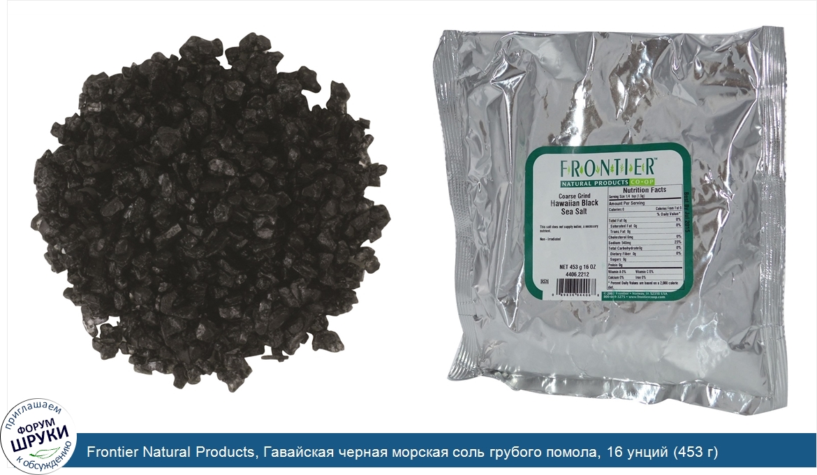 ru Frontier Natural Products, Гавайская черная морская соль грубого помола, 16 унций (453 г)