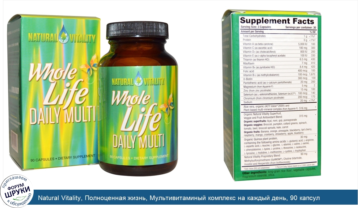 Друзья, если у вас есть отзыв/дополнение/комментарий/вопрос относительно Natural Vitality, Полноценная жизнь, Мультивитаминый комплекс на каждый день, 90 капсул - напишите его ответом в эту тему (это будет полезно всему сообществу в целом и вам в отдельности).