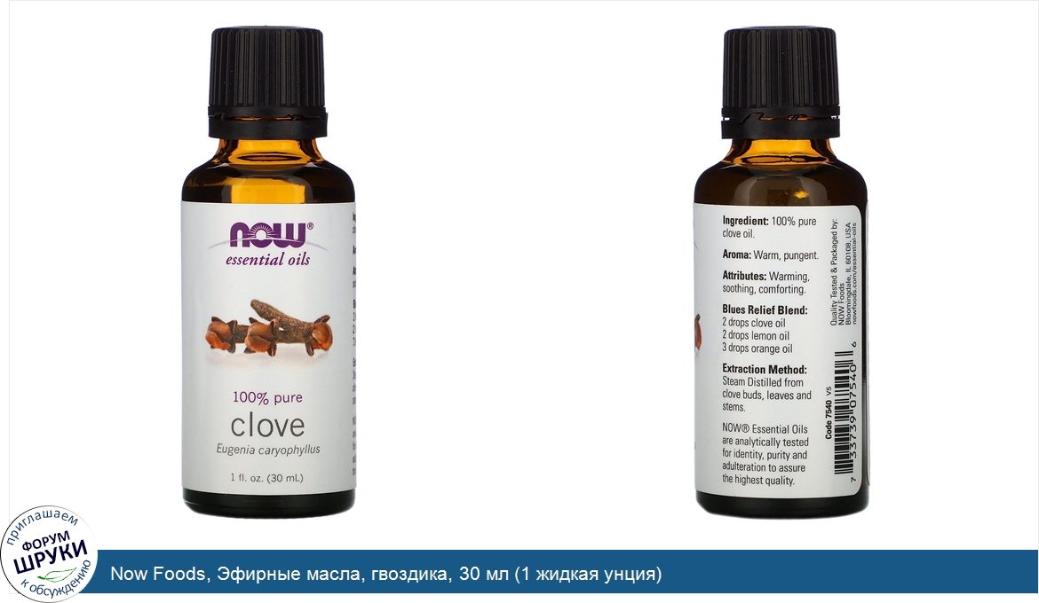 Now Foods, Эфирные масла, гвоздика, 30 мл (1 жидкая унция)