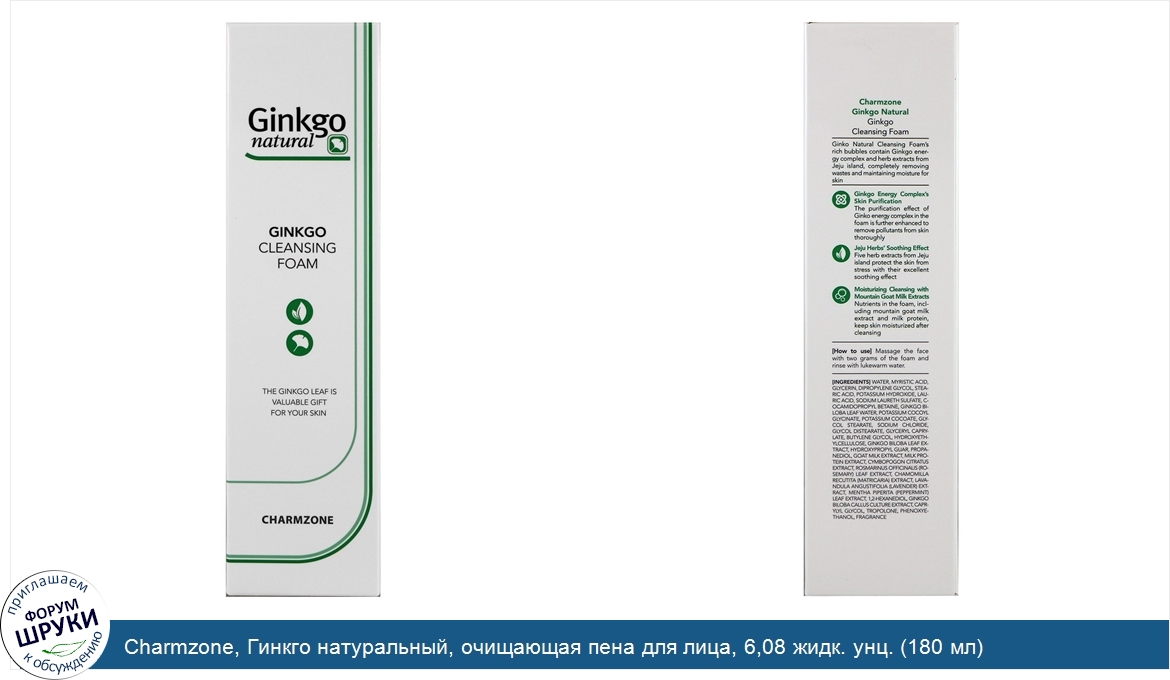 Друзья, если у вас есть отзыв/дополнение/комментарий/вопрос относительно Charmzone, Гинкго натуральный, очищающая пена для лица, 6,08 жидк. унц. (180 мл) - напишите его ответом в эту тему (это будет полезно всему сообществу в целом и вам в отдельности).