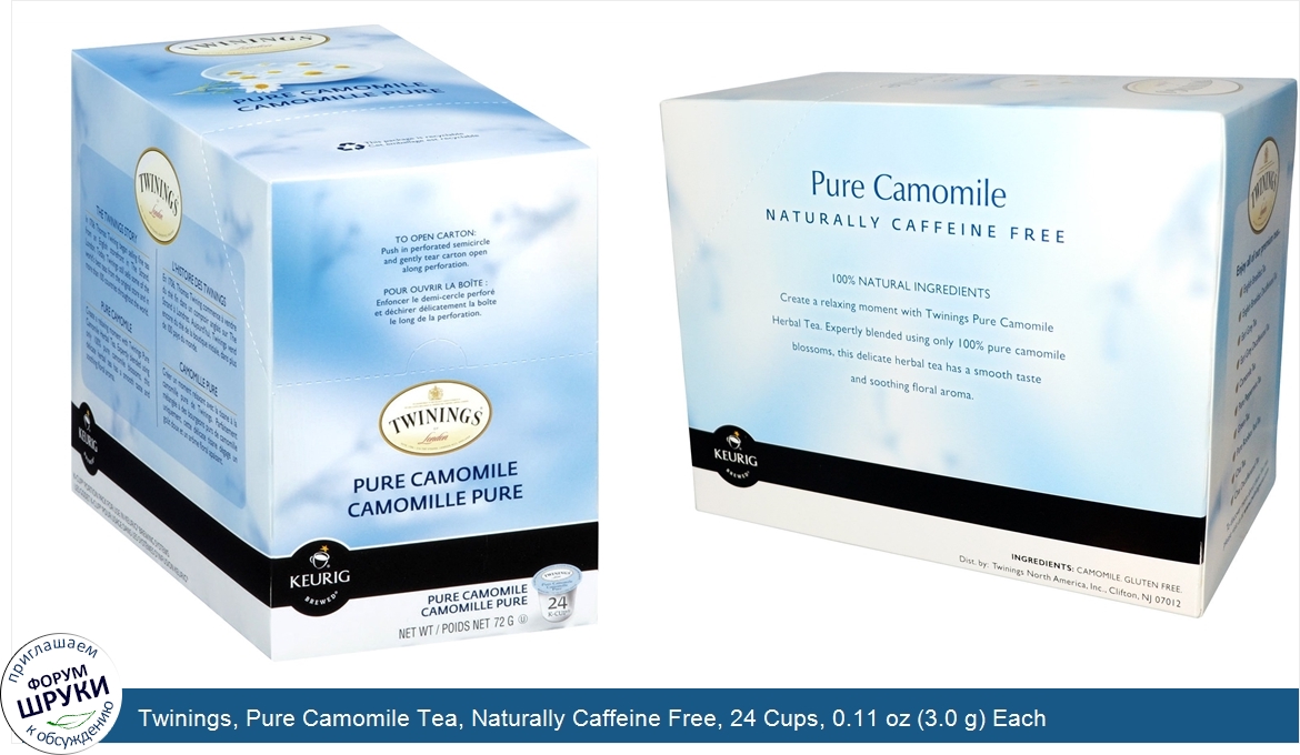 Twinings of London. Keurig Brewed®. 100% Natural Ingredients. Create a relaxing moment with Twinings Pure Camomile Herbal Tea. Expertly blended using only 100% pure camomile blossoms, this delicate herbal tea has...