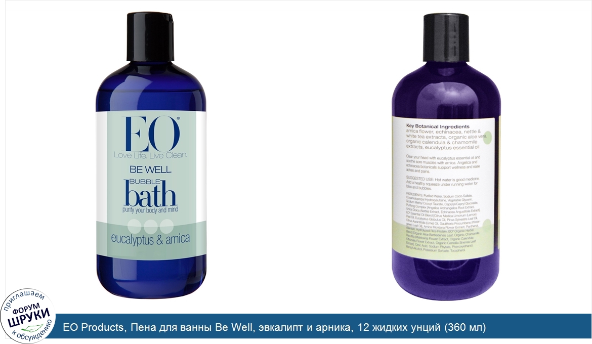 Друзья, если у вас есть отзыв/дополнение/комментарий/вопрос относительно EO Products, Пена для ванны Be Well, эвкалипт и арника, 12 жидких унций (360 мл) - напишите его ответом в эту тему (это будет полезно всему сообществу в целом и вам в отдельности).