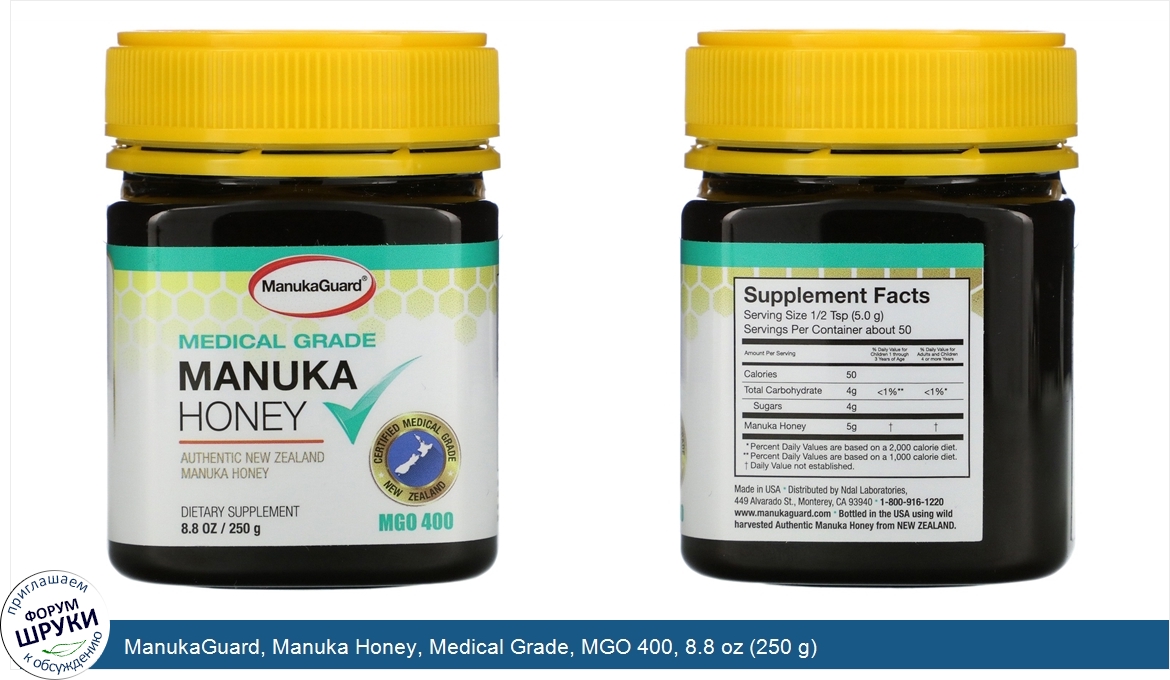 ManukaGuard, Manuka Honey, Medical Grade, MGO 400, 8.8 oz (250 g)