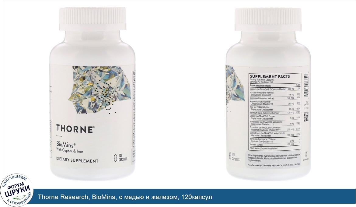 Друзья, если у вас есть отзыв/дополнение/комментарий/вопрос относительно Thorne Research, BioMins, с медью и железом, 120капсул - напишите его ответом в эту тему (это будет полезно всему сообществу в целом и вам в отдельности).