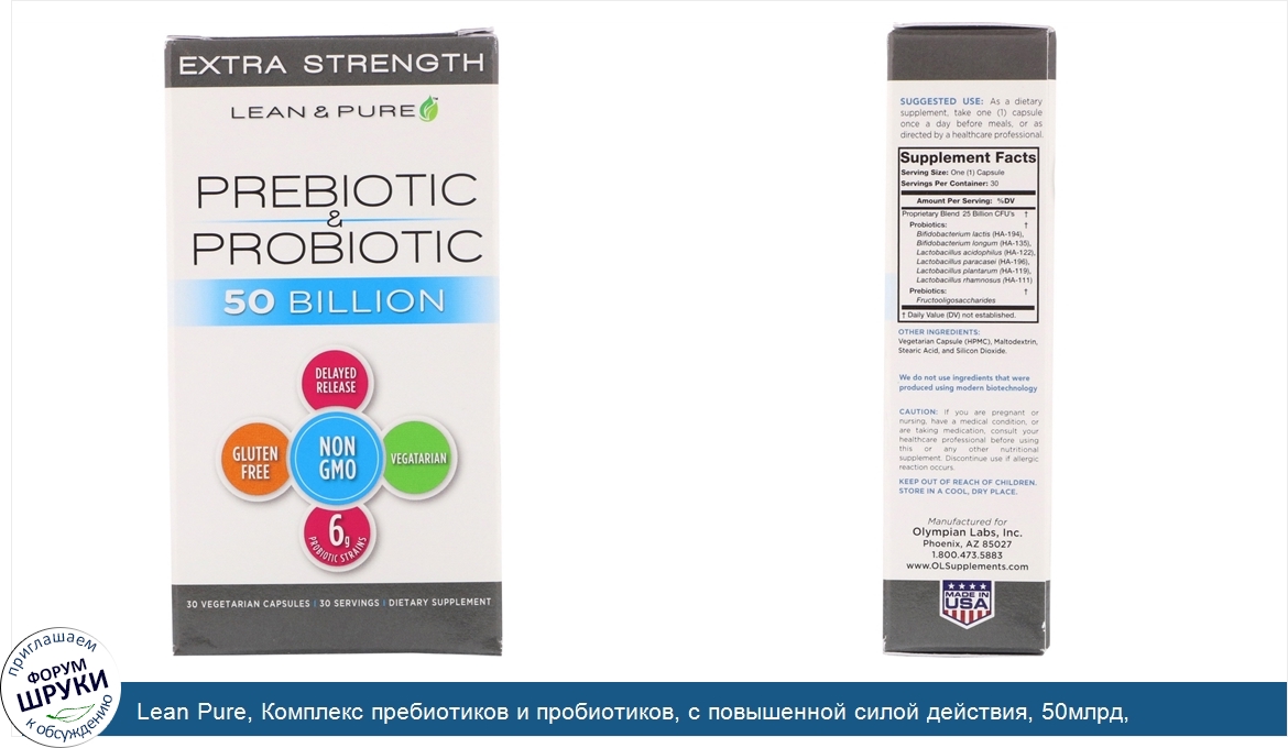 Lean Pure, Комплекс пребиотиков и пробиотиков, с повышенной силой действия, 50млрд, 30вегетарианских капсул