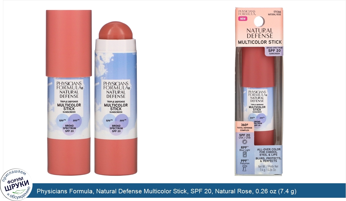 ru Physicians Formula, Natural Defense Multicolor Stick, SPF 20, Natural Rose, 0.26 oz (7.4 g)