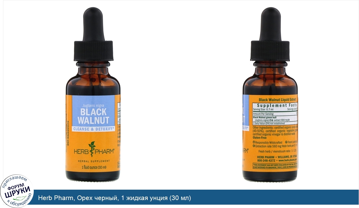 Друзья, если у вас есть отзыв/дополнение/комментарий/вопрос относительно Herb Pharm, Орех черный, 1 жидкая унция (30 мл) - напишите его ответом в эту тему (это будет полезно всему сообществу в целом и вам в отдельности).