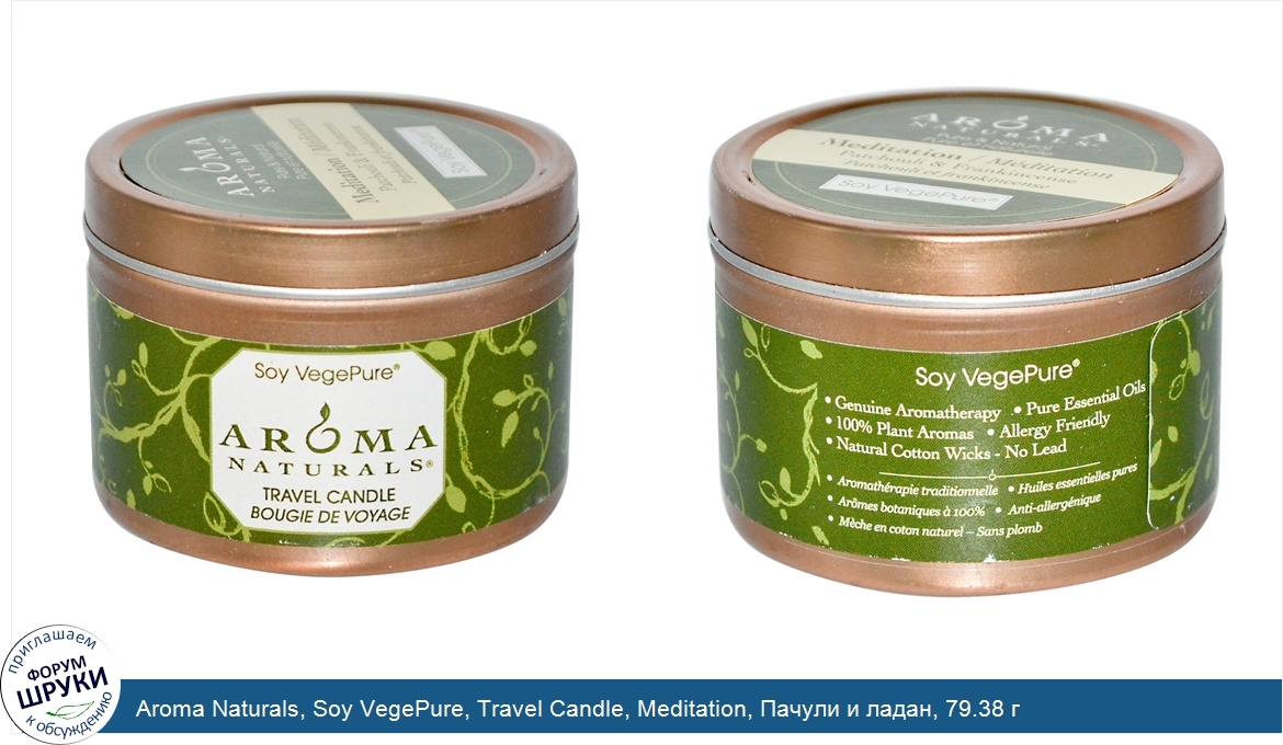Aroma Naturals, Soy VegePure, Travel Candle, Meditation, Пачули и ладан, 79.38 г