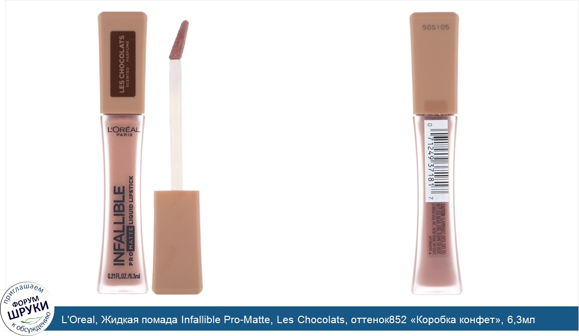 L'Oreal, Жидкая помада Infallible Pro-Matte, Les Chocolats, оттенок852 «Коробка конфет», 6,3мл