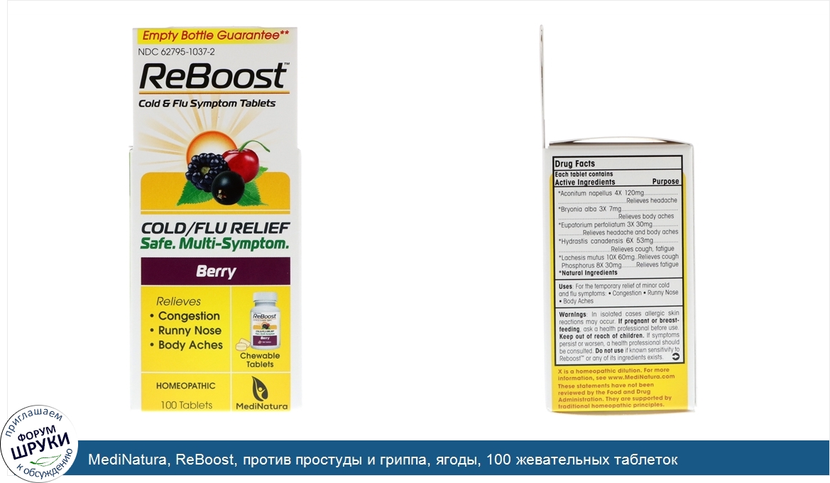Друзья, если у вас есть отзыв/дополнение/комментарий/вопрос относительно MediNatura, ReBoost, против простуды и гриппа, ягоды, 100 жевательных таблеток - напишите его ответом в эту тему (это будет полезно всему сообществу в целом и вам в отдельности).