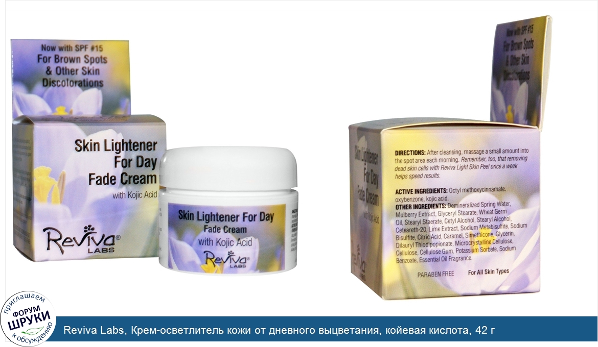 Reviva Labs, Крем-осветлитель кожи от дневного выцветания, койевая кислота, 42 г