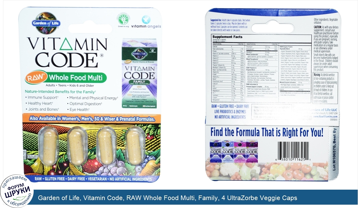 Друзья, если у вас есть отзыв/дополнение/комментарий/вопрос относительно Garden of Life, Vitamin Code, RAW Whole Food Multi, Family, 4 UltraZorbe Veggie Caps - напишите его ответом в эту тему (это будет полезно всему сообществу в целом и вам в отдельности).