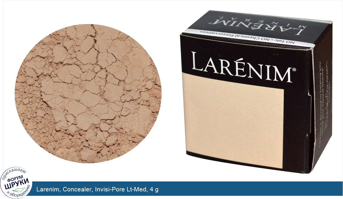 Друзья, если у вас есть отзыв/дополнение/комментарий/вопрос относительно Larenim, Concealer, Invisi-Pore Lt-Med, 4 g - напишите его ответом в эту тему (это будет полезно всему сообществу в целом и вам в отдельности).