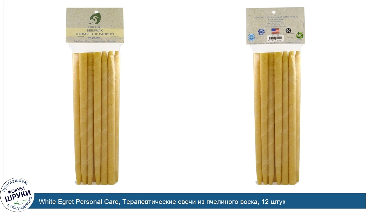 White Egret Personal Care, Терапевтические свечи из пчелиного воска, 12 штук