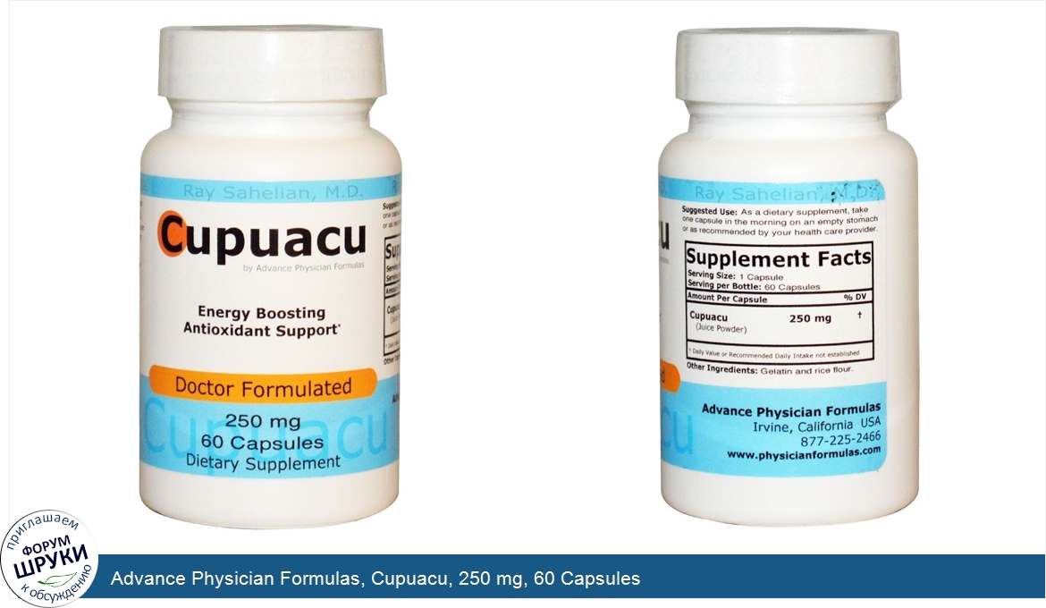 Advance Physician Formulas, Cupuacu, 250 mg, 60 Capsules