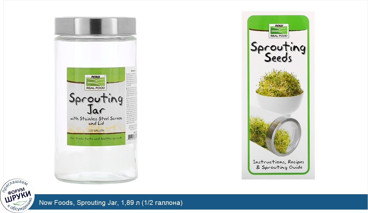 Now Foods, Sprouting Jar, 1,89 л (1/2 галлона)