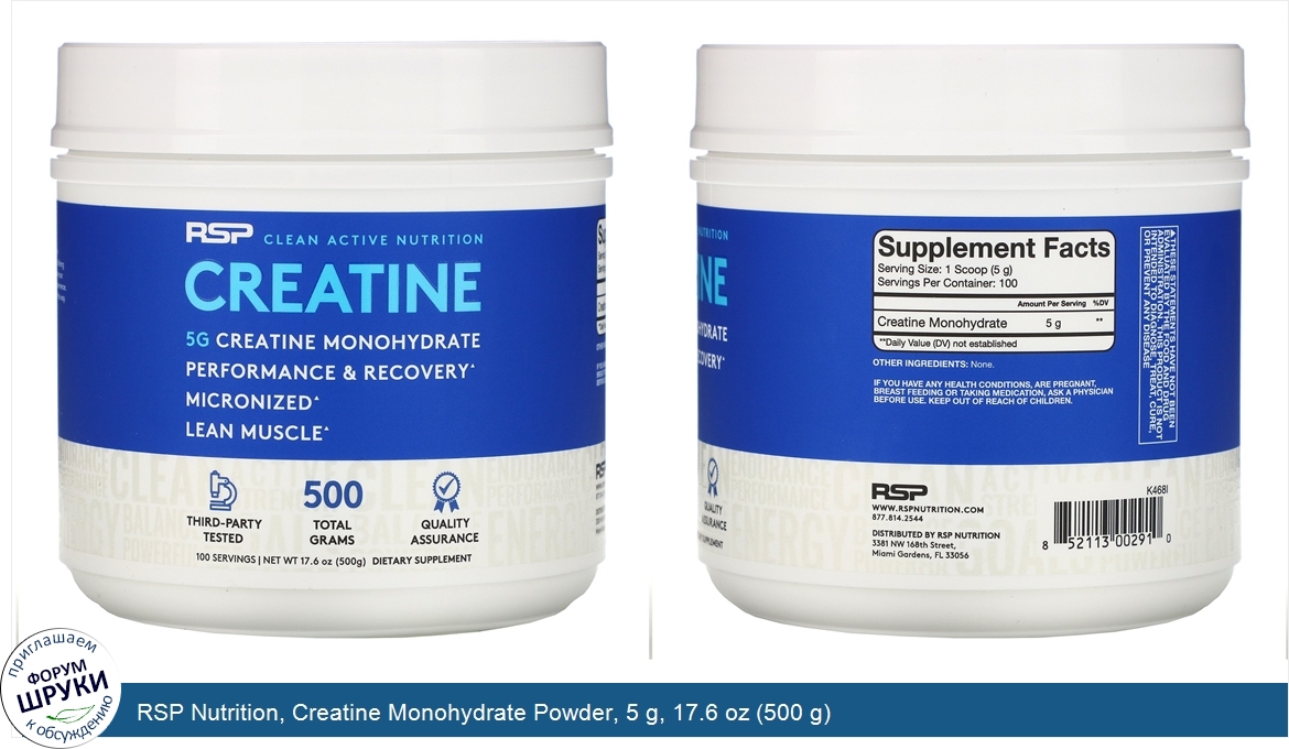 Друзья, если у вас есть отзыв/дополнение/комментарий/вопрос относительно RSP Nutrition, Creatine Monohydrate Powder, 5 g, 17.6 oz (500 g) - напишите его ответом в эту тему (это будет полезно всему сообществу в целом и вам в отдельности).