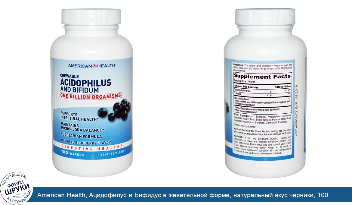 Друзья, если у вас есть отзыв/дополнение/комментарий/вопрос относительно American Health, Ацидофилус и Бифидус в жевательной форме, натуральный вкус черники, 100 пластинок - напишите его ответом в эту тему (это будет полезно всему сообществу в целом и вам в отдельности).