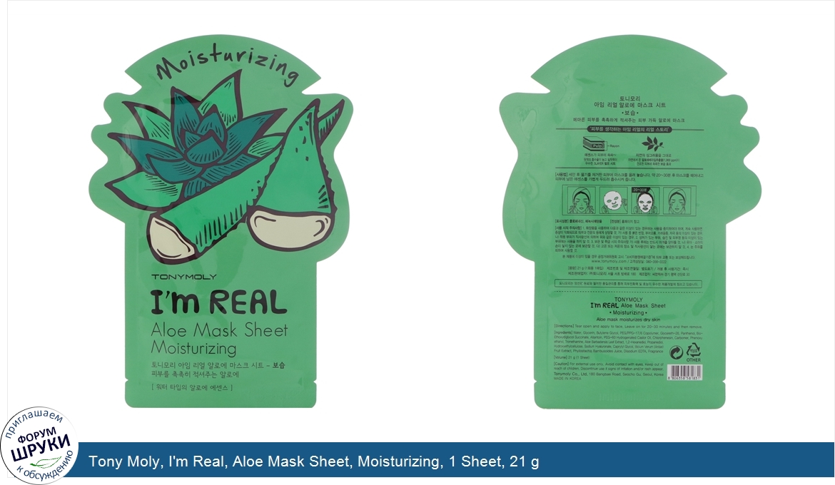 Друзья, если у вас есть отзыв/дополнение/комментарий/вопрос относительно Tony Moly, I'm Real, Aloe Mask Sheet, Moisturizing, 1 Sheet, 21 g - напишите его ответом в эту тему (это будет полезно всему сообществу в целом и вам в отдельности).