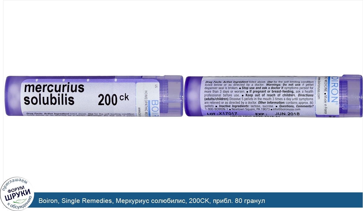 Друзья, если у вас есть отзыв/дополнение/комментарий/вопрос относительно Boiron, Single Remedies, Меркуриус солюбилис, 200CK, прибл. 80 гранул - напишите его ответом в эту тему (это будет полезно всему сообществу в целом и вам в отдельности).
