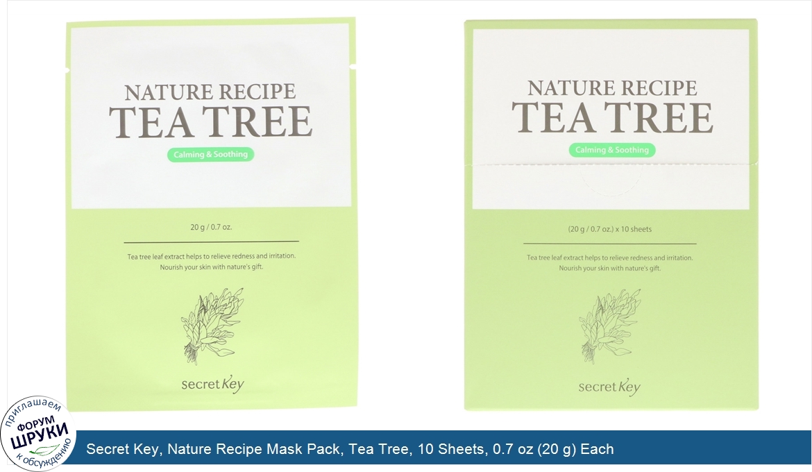 Друзья, если у вас есть отзыв/дополнение/комментарий/вопрос относительно Secret Key, Nature Recipe Mask Pack, Tea Tree, 10 Sheets, 0.7 oz (20 g) Each - напишите его ответом в эту тему (это будет полезно всему сообществу в целом и вам в отдельности).