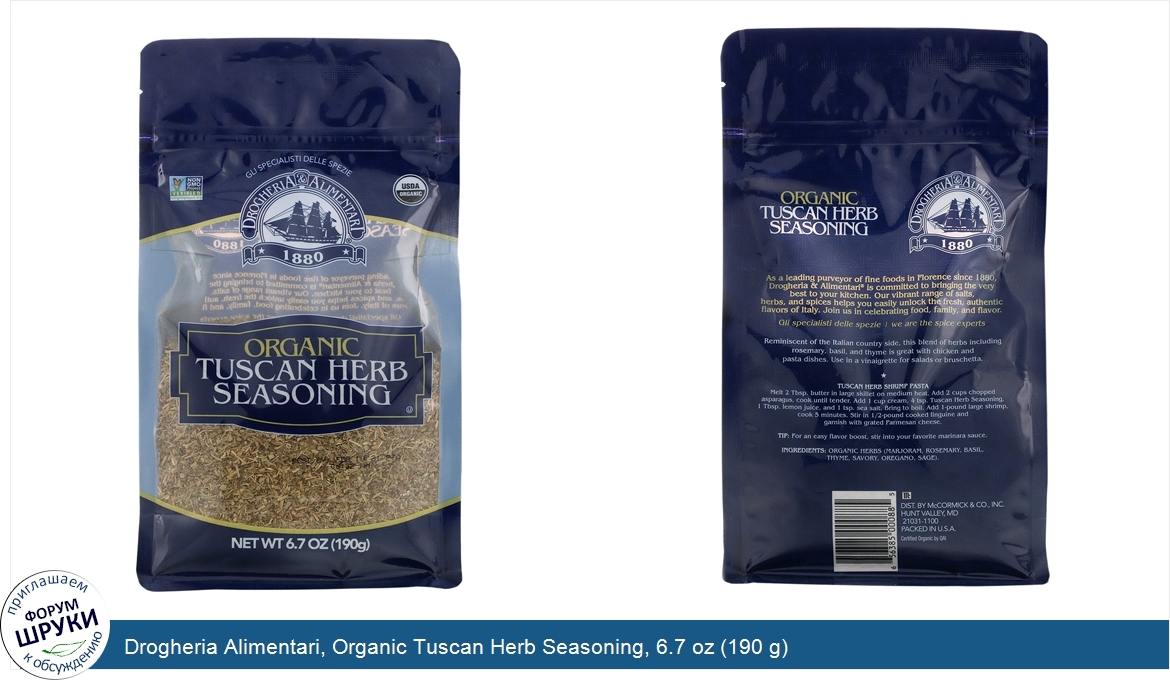 Друзья, если у вас есть отзыв/дополнение/комментарий/вопрос относительно Drogheria Alimentari, Organic Tuscan Herb Seasoning, 6.7 oz (190 g) - напишите его ответом в эту тему (это будет полезно всему сообществу в целом и вам в отдельности).