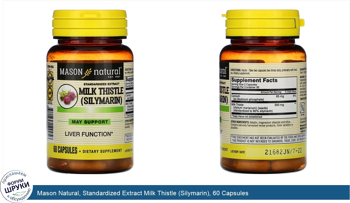 Друзья, если у вас есть отзыв/дополнение/комментарий/вопрос относительно Mason Natural, Standardized Extract Milk Thistle (Silymarin), 60 Capsules - напишите его ответом в эту тему (это будет полезно всему сообществу в целом и вам в отдельности).