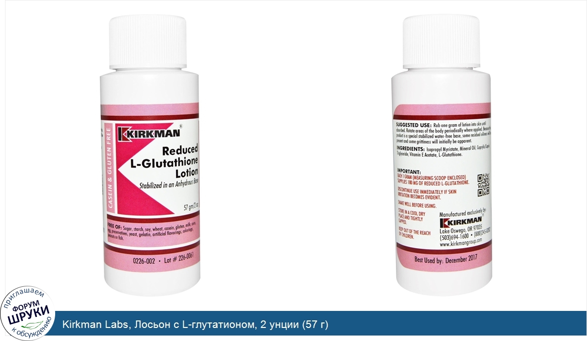 Друзья, если у вас есть отзыв/дополнение/комментарий/вопрос относительно Kirkman Labs, Лосьон с L-глутатионом, 2 унции (57 г) - напишите его ответом в эту тему (это будет полезно всему сообществу в целом и вам в отдельности).