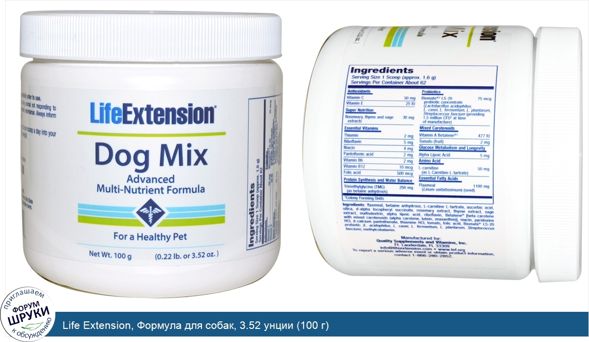 Друзья, если у вас есть отзыв/дополнение/комментарий/вопрос относительно Life Extension, Формула для собак, 3.52 унции (100 г) - напишите его ответом в эту тему (это будет полезно всему сообществу в целом и вам в отдельности).