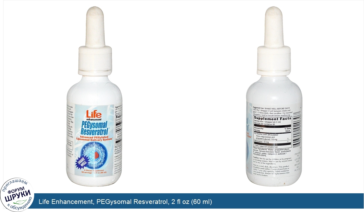 Друзья, если у вас есть отзыв/дополнение/комментарий/вопрос относительно Life Enhancement, PEGysomal Resveratrol, 2 fl oz (60 ml) - напишите его ответом в эту тему (это будет полезно всему сообществу в целом и вам в отдельности).