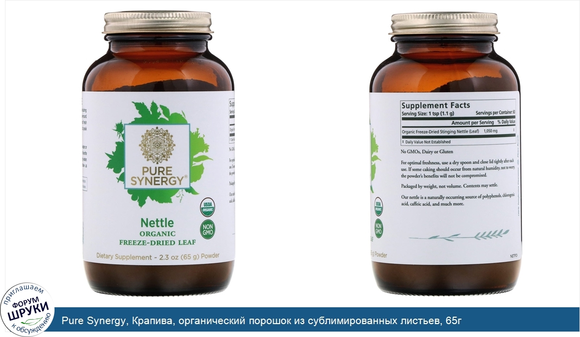 Pure Synergy, Крапива, органический порошок из сублимированных листьев, 65г