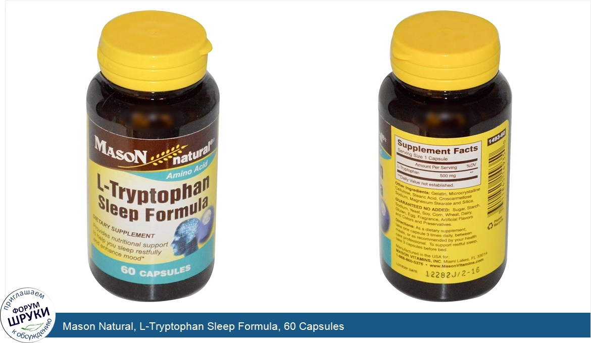 Друзья, если у вас есть отзыв/дополнение/комментарий/вопрос относительно Mason Natural, L-Tryptophan Sleep Formula, 60 Capsules - напишите его ответом в эту тему (это будет полезно всему сообществу в целом и вам в отдельности).