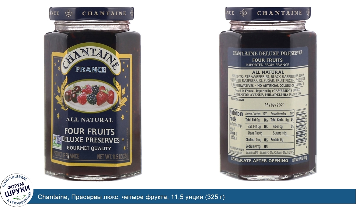 Друзья, если у вас есть отзыв/дополнение/комментарий/вопрос относительно Chantaine, Пресервы люкс, четыре фрукта, 11,5 унции (325 г) - напишите его ответом в эту тему (это будет полезно всему сообществу в целом и вам в отдельности).